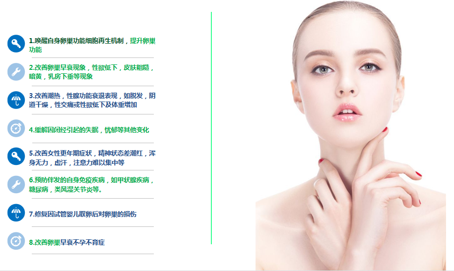 卵巢幹細胞來(lái)源于人(rén)臍帶間(jiān)充 σ≤質幹細胞、羊膜間(jiān)充質幹細胞,通(tōng)₽$φ過制(zhì)備後具有(yǒu)獨特的(de)修複需求誘導遷徙↓的(de)特性。移植到(dào)卵巢早衰患者體(t×↔ǐ)內(nèi)後,卵巢幹細胞會(huì)在特定環境下(xià)歸巢αλ•。在早衰卵巢的(de)微(wēi)環境下(xià)能(n×÷✔éng)因地(dì)制(zhì)宜的(de)分(fēn)化(huà)為(wèi ↕)卵巢細胞,從(cóng)而補充卵巢細胞數(shù)量,£↓發揮細胞正常功能(néng),維持女(nǚ)性卵巢激素平衡,防止卵↕€巢萎縮變形、延緩早更早衰。幹細胞再生(shēng)的(de)卵巢細胞可(kě)以對(du×ì)腦(nǎo)垂體(tǐ)分(fēn)泌的(de)σ≠促性腺激素作(zuò)出及時(shí)、正确的(de)反應,分(f εēn)泌足量的(de)雌性激素,使體(tǐ)內(nèi)激素水(shuǐ)平<&₽"處于平衡狀态,改善女(nǚ)性因為(wèi)卵巢功能(néng)衰退而帶來(lái)的δ"→(de)各種困擾。